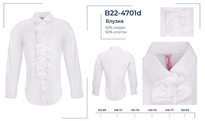B22-4701d (122-152) 1цв (6шт) Блузка для девочек дл. рукав, BROSTEM, шт