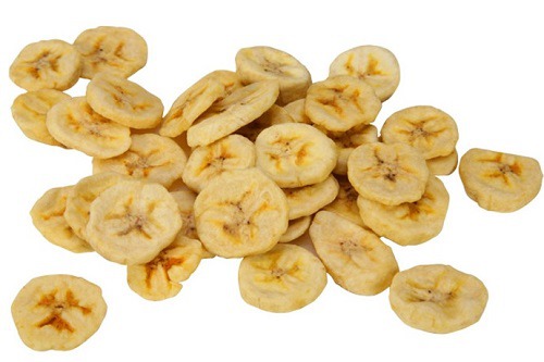 Банановые чипсы по сравнению с вяленым продуктом более калорийны – питательная ценность – 519 ккал.