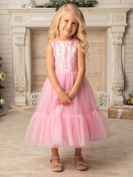 Нарядное розовое длинное платье без рукавов с пышной юбкой из фатина. Гипюр на лифе, декоративный бант на поясе сзади. На спинке имеется поясок, чтобы дополнительно утянуть талию. Подкладка 100% хлопок. Праздничное детское платье можно использовать как новогоднее, вечернее, школьное, на выпускной.Характеристики:Ткань верха: Сатин - Полиэстер Гипюр - ПолиэстерСетка - ПолиэстерПодкладка 100% хлопокПроизводитель: batik