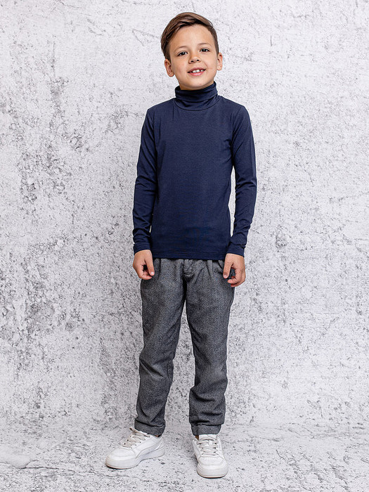 Водолазка (джемпер) для мальчика с длинными рукавами в синей расцветке из ткани супрем пенье повышенного граммажа. Важная базовая вещь в любом гардеробе: для школы и повседневной носки. Стильная, уютная, на любое время года.Характеристики:Ткань: Супрем пенье (повышенный граммаж) 92% хлопок 8% лайкраПроизводитель: batik