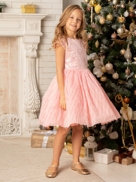 Легкое розовое платье из хлопка с юбкой с трикотажной принтованной сеткой. Ткань верха 100% хлопок, сетка 100% полиэстер. Лиф украшен узором из пайеток. Очаровательное мини-платье подойдет для праздника в детском саду.Характеристики:Ткань верха: Сатин - Полиэстер Сетка - ПолиэстерПодклад 100% хлопокПроизводитель: batik