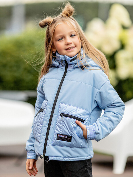 Куртка для девочки Вера демисезонная голубая с утеплителем. Материал с ветро- и водоотталкивающим покрытием. Украшена нашивками с надписями. Съемный капюшон регулируется с помощью шнурка-кулиски со стопперами. Центральная застежка на молнию с защитой подбородка. Особенности: Съемный регулируемый капюшонСпущенная линия проймыКарманы с вертикальной и горизонтальной молниейСовмещение матовой ткани и ткани с металлизированным эффектомРегулировка по низуСветоотражающие элементыЭластичные манжеты рукавов Характеристики:Ткань верха: Twill stretch (мембрана) Подклад: T/CУтеплитель: 150 гр Температурный режим от +10 до -5 СПроизводитель: batik