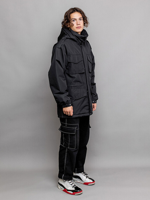 Куртка-парка Флойд черная для мальчика из плотной фактурной ткани мембрана. Центральная молния скрыта цельнокроенной ветрозащитной планкой с кнопками. Высокий воротник застегивается на две декоративные кнопки. Нагрудные объемные накладные карманы с клапаном на кнопке. Удобные нижние карманы с клапаном на магните. Спинка с вставками по пройме для регулировки объема, с фигурным удлиненным низом и кулисой со шнуром. Капюшон съемный на молнии и регулировкой по внутреннему лицевому краю. Внутренняя кулиса со шнуром для регулировки ширины талии. Рукав объемный с эластичной манжетой и патой на кнопке для регулировки ширины.  Особенности: Пропитка материала DWRРегулировка объёма рукава Регулировка объёма куртки по талии и низу Съёмный капюшон Регулировка объёма капюшона Спущенная линия плеча с погоном на кнопке  Характеристики:Ткань верха: мембранаПодклад: таффета Утеплитель: 100 гр/м2Температурный режим от +5°С до -10°СПроизводитель: batik