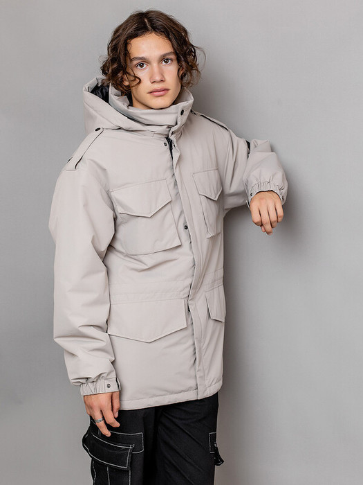 Куртка-парка Флойд серебристо-бежевая для мальчика из плотной фактурной ткани мембрана. Центральная молния скрыта цельнокроенной ветрозащитной планкой с кнопками. Высокий воротник застегивается на две декоративные кнопки. Нагрудные объемные накладные карманы с клапаном на кнопке. Удобные нижние карманы с клапаном на магните. Спинка с вставками по пройме для регулировки объема, с фигурным удлиненным низом и кулисой со шнуром. Капюшон съемный на молнии и регулировкой по внутреннему лицевому краю. Внутренняя кулиса со шнуром для регулировки ширины талии. Рукав объемный с эластичной манжетой и патой на кнопке для регулировки ширины.  Особенности: Пропитка материала DWRРегулировка объёма рукава Регулировка объёма куртки по талии и низу Съёмный капюшон Регулировка объёма капюшона Спущенная линия плеча с погоном на кнопке  Характеристики:Ткань верха: мембранаПодклад: таффета Утеплитель: 100 гр/м2Температурный режим от +5°С до -10°СПроизводитель: batik