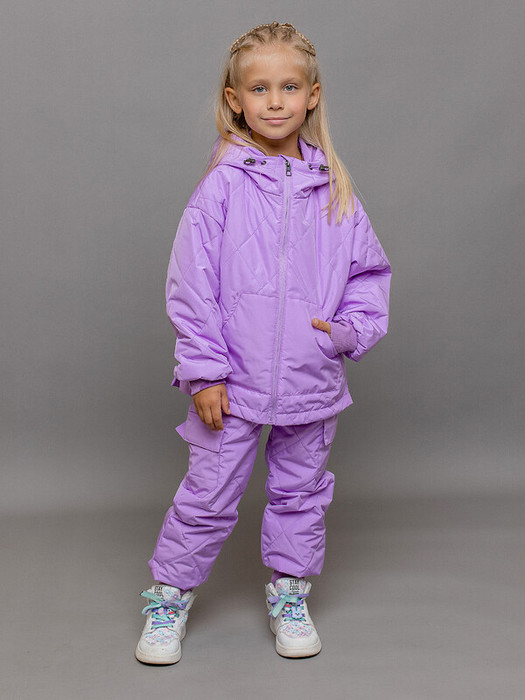 Комплект стеганый Орли детский в сиреневом цвете – тренд 2024. Куртка имеет свободный крой со спущенной линией плеча. Куртку и брюки можно носить отдельно. Комплект утепленный из тонкой плотной мембранной ткани с подкладкой из гладкой мягкой таффеты. Куртка с застежкой на молнию, регулируемым капюшоном, вместительным карманом-кенгуру. Низ рукава с мягкой трикотажной манжетой. Низ куртки фигурный с удлиненной спинкой и боковыми разрезами. Брюки-джоггеры на эластичном поясе с кулисой для регулировки ширины, удобными карманами и боковыми накладными карманами с клапаном. Низ штанин с трикотажным манжетом. Комплект представлен в широкой размерной сетке от 104 до 134 роста.Характеристики:Ткань верха: мембранаПодклад: таффетаУтеплитель: 60 гр/м2Производитель: batik