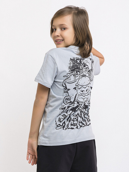 Футболка с коротким рукавом для детей из натурального хлопка. Расцветка серая, контрастный принт на спине. Классический круглый вырез – удобная посадка, не натирает шею. Футболка идеальна для садика, прогулок и активных игр. Легко комбинируется с любой детской одеждой: брюками, шортами, джинсами.Характеристики:Ткань: 100% хлопокПроизводитель: batik