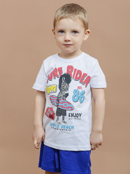 Футболка для мальчика с коротким рукавом в белом цвете. Детская футболка с принтом в виде зебры выполнена из натурального хлопка, что обеспечивает комфорт и безопасность для кожи. Подойдет для повседневной носки дома, в детском саду, на прогулки и спортивные секции.Характеристики:Ткань: 100% хлопокПроизводитель: batik