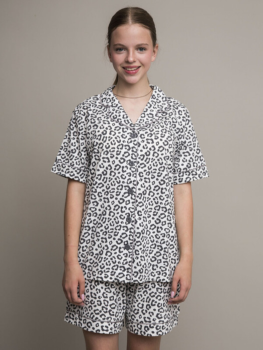 Детский пижамный комплект для девочки из супрема пенье. Футболка с коротким рукавом и удобные шорты. Нежный белый фон с модным леопардовым принтом. Футболка с милыми пуговичками спереди. Мягкая резинка на шортах для комфортного сна. Воздухопроницаемая ткань премиального качества.Характеристики:Ткань: Супрем пенье 100% хлопокПроизводитель: batik