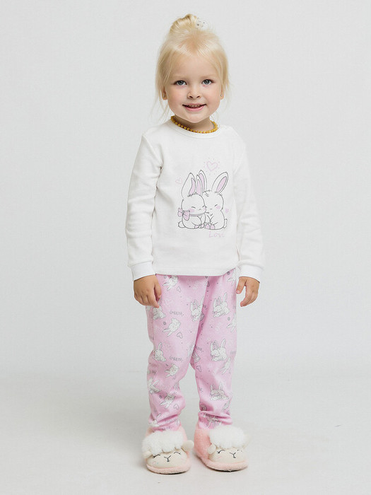 Комплект для девочки трикотажный: белый лонгслив и розовые леггинсы. Лонгслив с длинными рукавами и принтом в виде зайчиков. Леггинсы на резинке с рисунком. Уютный комплект на каждый день для новорожденных и малышей до 1,5 лет. Сшит из высококачественного трикотажа интерлок, который обеспечивает мягкость и комфорт во время носки.Характеристики:Материал: Интерлок пенье 100% хлопокПроизводитель: batik