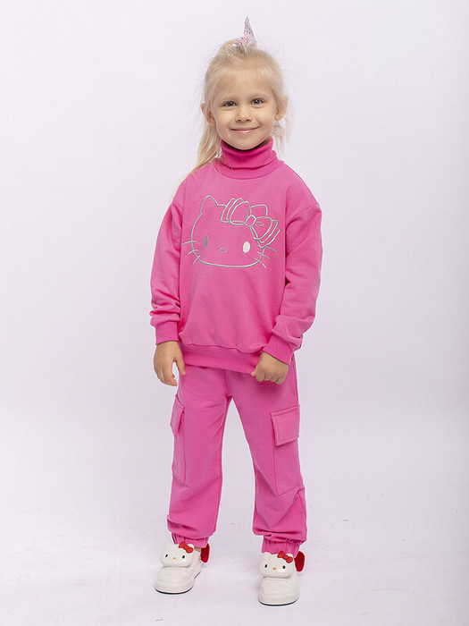 Свитшот розовый для девочки из футера с высоким воротником и вышивкой Китти на груди.