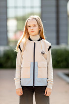 Жилет-анорак Кью из новой коллекции Осень 2022 от бренда детской одежды batik. Утепленный жилет голубого цвета с надписью на груди, капюшоном и застежкой-молнией. Можно надевать поверх толстовки или кофты. Имеет удлиненную спинку и разрезы по бокам.Характеристики:Ткань верха: Cotton-like memory Подклад: таффета Утеплитель: 120 грПроизводитель: batik