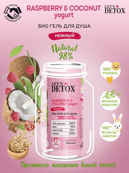 Совместные покупки Магнитогорск Косметика и парфюмерия Уход за телом — BB био гель для душа нежный "RASPBERRY & COCONUT yogurt" ,200 мл