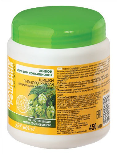 Живой БАЛЬЗАМ-КОНДИЦИОНЕР для укрепления и блеска волос Шишки пивного хмеля основан на богатейшем по составу настое шишек хмеля, который обладает укрепляющим действием, восстанавливает естественный баланс кожи головы и придает волосам ослепительный блеск. Регулярное применение шампуня и бальзама придает волосам силу и блеск, ускоряет их рост.