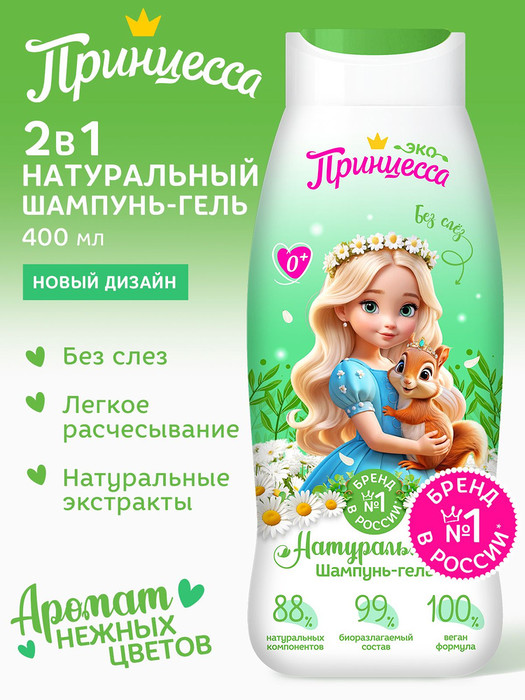 ПРИНЦЕССА ЭКО Шампунь-гель детский Для всей семьи с Ромашкой и Лавандой 0+