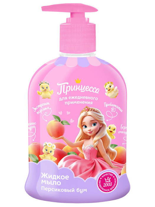 Нежный аромат персика раз за разом поднимает настроение Принцессе, нежный состав мыла обеспечивает чистоту и уход ее маленьким ручкам.