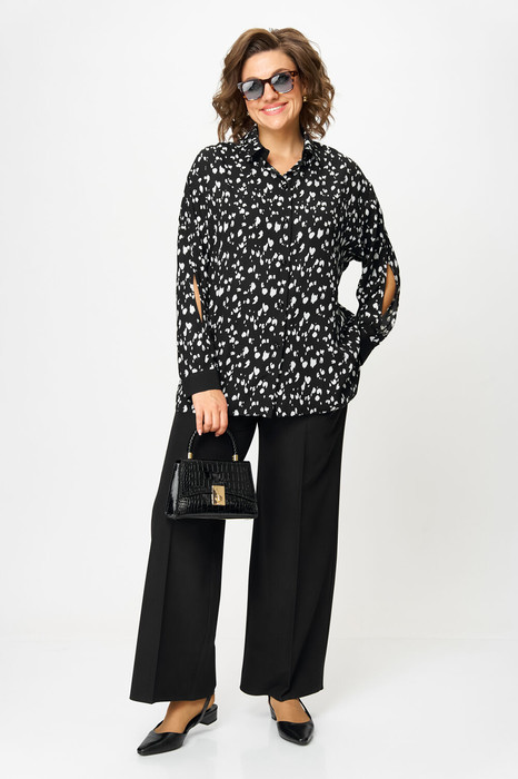 Блузка женская прямого силуэта со спущенным плечом. По бокам закругленные разрезы. Рукав с запахом и разрезом, на манжете. Застежка – планка на петли и пуговицы. Воротник на отрезной стойке. Стойка и манжета из отделочной ткани. По спинке идет отрезная кокетка. Такой женский офисный стиль можно носить, сочетая с другими вещами гардероба, создавая новые образы. Ткань атласная качественная и очень комфортная. Этот универсальная стильная блузка есть в больших размерах. Она отлично подойдет зимой и летом для офиса, для праздника, на каждый день, для вечеринки и корпоративы, для прогулок, для отдыха, для работы, на выпускной, на день рождения для высоких и для невысоких девушек и женщин. Блузка станет любимой вещью в гардеробе и сделает Ваш образ незабываемым! В «Анастасия» Вы всегда найдете богатый выбор качественной одежды для женщин больших размеров. Длина по спинке: (48-52)-70 см, (54-58)-72см. Длина рукава с манжетой: (48-52)-55 см, (54-58)-57см