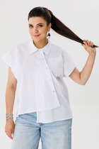 Модная женская блузка с коротким рукавом — находка для тех, кто ценит удобство и элегантность. Лёгкая, свободная модель c V –образным вырезом горловины, с отложным воротником и рукавом на спущенной линии проймы, выполнена из приятного к телу смесового хлопка, идеальна для лета и весны. Благодаря классической посадке и разрезам в боковых швах она скрывает нюансы фигуры, а декоративная тесьма по линии горловины, краю борта и низу рукава украшает силуэт, создавая женственный акцент.