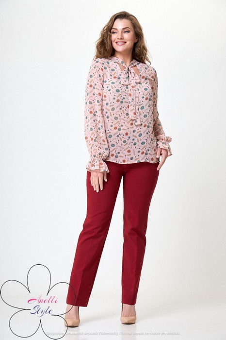 Блуза женская прямого кроя, длиной до середины бедра. Рукав длинный, низ на резинке. По переду V-образный вырез, с бантом. Блузка отличный вариант вне сезона, отлично будет сидеть на любой фигуре. Вся необходимая информация о производителе указана на этикетке. При сьемке в образе использованы брюки бренда ANELLIstyle М - 895