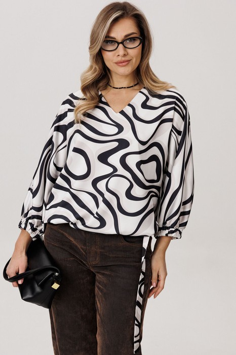 Именно это сочетание роскошной ткани цвета «белое озеро», безупречного кроя и продуманных деталей делает блузу истинной жемчужиной гардероба. Она станет верной спутницей в будни, даря комфорт в офисе, и безупречно дополнит ваш образ в день особенный, когда хочется чувствовать себя сияющей и неотразимой.