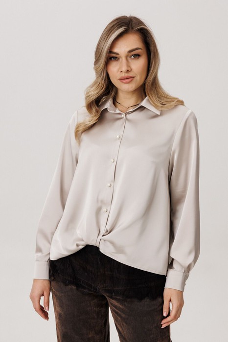На модели в блузе цвета «речной жемчуг» кружевной топ 1664.