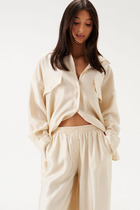 Ее свободный крой и мягкие спущенные плечи создают основу для невесомого силуэта. Глубокий V-образный вырез придает образу изысканность, а изящная кокетка добавляет художественный штрих. Рукав-кимано, собранный на резинке, мягко облегает запястье, предлагая вам варьировать его длину.