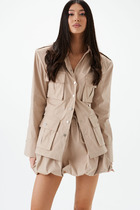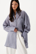 M&S Cotton Frill Neck Long Sleeve Shirt blue
