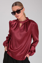 Особенностью и украшением блузы являются рукава, в верхней части которых вставлено хлопковое ажурное кружево. Низ рукавов присборен на манжетах, которые кокетливо завязываются на бант.