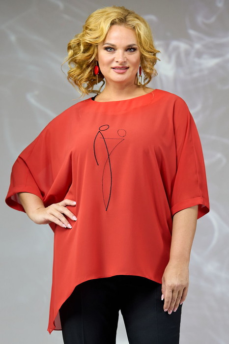 Элегантный женский костюм в стиле "бохо", состоящий из блузы и майки. Блуза свободного силуэта из приятной ткани. Рукав блузы цельнокроеный с притачной манжетой. Низ блузы асимметричный, удлиненный с одной стороны по боковому шву. По переду блузы выполнена вышивка. Майка классическая на широких бретелях.