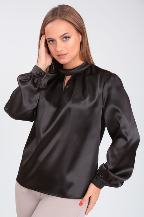 Нарядная женская блузка из гладкой однотонной ткани с атласной структурой украсит вас на любом праздничном или официальном мероприятии. Такая блузка будет прекрасно сочетаться со строгими брюками и юбкой любого фасона.