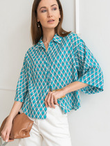 Vilatte Летящая блузка из премиальной вискозы и лиоцелла D29.221 морская волна