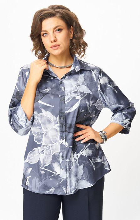 Блуза БелЭльСтиль 877 синий принт