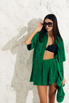 Блузка прилегающего силуэта, лиф имитирует корсет, без рукавов. Полочка лифа с рельефом и отрезным бочком низ лифа фигурный. Спинка лифа с рельефом и отрезным бочком, и застежкой на потайную тесьму-молнию в центральном шве. Полочка и спинка с вырезом каре по горловине и баской-балон по низу блузки. Блузка на подкладке из основной ткани.