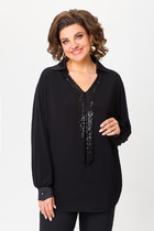 Блузка женская прямого силуэта. Воротник стояче-отложной. Застежка по планке переда на петли и пуговицы. Спинка с кокеткой, со встречной складкой. По боковым швам разрезы. Рукав втачной, с притачной манжетой, застегивающейся на петли и пуговицы. Воротник рубашечного типа. В комплекте обтачной бант.