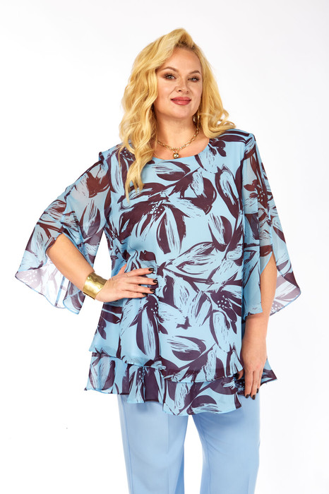 Совместные покупки Магнитогорск Женская одежда Блузки, рубашки — Блуза Элль стиль 2213/12а голубой/кофе