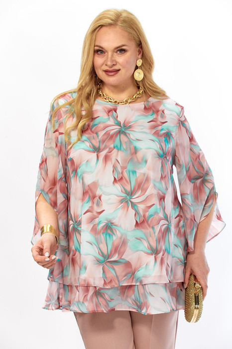 Изделие позволит чувствовать себя ярко и уверенно. Воздушная блуза, свободного кроя, выполнена из принтованного шифона, что придает уникальность стилю своими красками. На полочке нагрудные вытачки, вырез горловины аккуратной округлой формы. Рукав втачной, свободный. Блуза на подкладке.