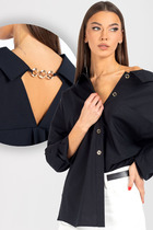 Блуза свободного силуэта, выполнена из принтованной ткани с красивым цветовым акцентом. Воротник отложной. Эстетично подчеркнут V-образный вырез горловины, оформлен имитацией застежки пуговиц, что служит декоративным элементом изделия, встречная складка, одновременно создаст повышенный комфорт. Рукав втачной, свободный, расширенный к низу, создает современный стиль образу и удобство. В боковых швах предусмотрены разрезы.