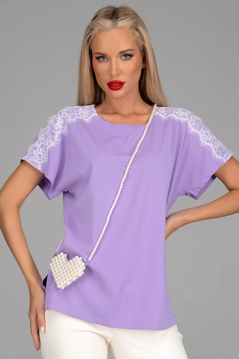 Легкая блузка “Келли” выполнена из комбинации двух разных видов ткани – кружево, искусственный шелк. Отлично садится по фигуре, подчеркивает ее достоинства, материал ткани плотный и держит форму.