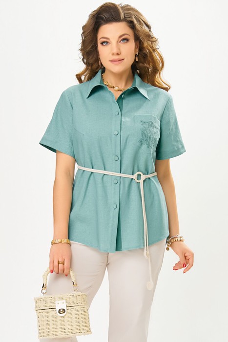 Воротник-стойка рубашечного типа добавляет структуру и выразительность, а нагрудная выточка обеспечивает идеальную посадку. Левую полочку украшает накладной карман с декоративной печатью, подчеркивая стильный акцент. По спинке блузки расположена изящная декоративная печать, придающая изделию оригинальности и индивидуальности.