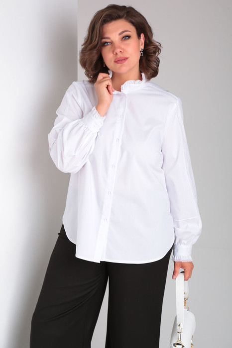 Нарядная романтичная блузка  свободного силуэта,с втачным рукавом,рюшами с кружевной тесьмой по стойке,кокетке спинки  и манжетам,застежка на петли пуговицы