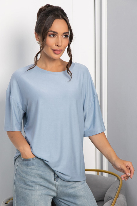 Стильная женская футболка — это must-have в гардеробе каждой модницы! Благодаря свободному крою и спущенным плечам она выглядит непринуждённо и комфортно. Её можно носить как заправленной в юбку или брюки, так и навыпуск. Эта футболка станет отличным дополнением как к активному образу, так и к расслабленному повседневному наряду, придавая ему стильный акцент.