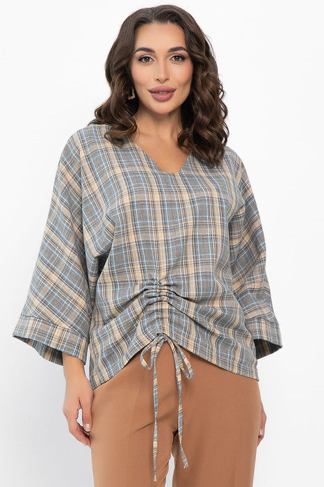 Блузка свободного кроя в серо-бежевых тонах — это то, что вам нужно! V-образный вырез подчеркнёт вашу шею, а цельнокроеные рукава с манжетами придадут образу элегантности. Блузка украшена кулиской спереди — это изящная деталь, которая сделает ваш образ неповторимым. Блузка идеально подойдёт для прогулок, встреч с друзьями или уютных вечеров дома. Позвольте себе быть яркой и стильной с нашей оригинальной женской блузкой!
