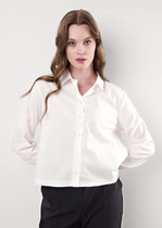 Выразите свою уникальность и добавьте изысканности любому наряду с этой невероятной блузкой! Рукава длиной 3/4, цельнокроеные и завершающиеся манжетом с пуговицей и патой, придают модели утонченный вид. Воротник-стойка плавно переходит в широкий распашной воротник апаш, создавая современный и элегантный силуэт. Спина немного длиннее переда. По центру передней части проходит планка, а внизу — сборка на шнурке, придающая интересный объем. Эта блузка станет идеальным выбором как для деловых встреч, так и для повседневного образа, добавляя вашему стилю нотку роскоши и утонченности.