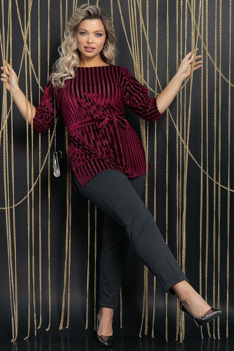 Туника для создания стильного праздничного образа. Такая модель будет интересно смотреться в сочетании с прилегающим низом. Украшением модели служат рукава с вырезами, которые и не открывают полностью руку, и слегка приоткрывают плечи. По бокам туники есть разрезы, в комплект входит пояс из основной ткани.