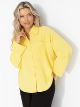 Стильная рубашка прямого силуэта из текстильной ткани цвета мультиколлор. Круглый вырез изделия обработан внешней обтачкой. По переду изделия выполнена планка с застежкой на пуговицы. Рубашка со спущенной проймой, втачные рукава с отворотом и застежкой на пуговицу. По переду изделия накладной карман. Длина изделия по спинке от плечевого шва до низа изделия — 71 см. Рост фотомодели — 170 см.