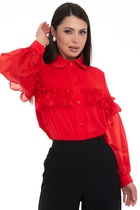 Блузка прямого силуэта. По плечам драпировка в виде двух