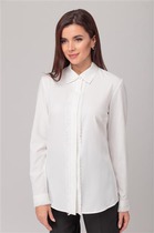 Стильная блузка прямого силуэта из плотного креп-шифона. Изделие с центральной планкой на застежку петли пуговицы по полочке и воланами вдоль планки. ГорловинаV-образной формы. Рукав втачной с центральным швом и воланом по низу и со сборкой на эластичную ленту в 8см от края рукава. Спинка изделия цельная.