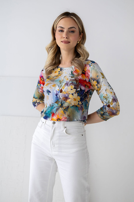 Блузка прямого силуэта с круглым вырезом горловины. Визуально удленяет шею. Рукава втачные, 3/4. Ткань вискоза с эластаном. Практичная. Яркие дизайны. Хороший пошив и посадка. Блузка сделана из приятной ткани и не принесёт дискомфорт в ее ношении. Качество пошива позволяет стирать ее в стиральной машине без усадки и расхождения швов. Блузка женская большого размера будет прекрасно смотреться в комплекте с брюками классическими, джинсами большого размера и с юбкой, каждый раз помогая Вам создавать новый неповторимый образ. Практичная ткань, современный стиль, интересный дизайн, свободный покрой, широкий размерный ряд.