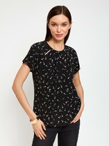Блуза прямого силуэта. Выполнена застежка на петли и пуговицы. По горловине стояче-отложной воротник с отрезной стойкой. По спинке кокетка и склада на свободу движения. Воротник, край планки и манжета декорированы дизайнерской тесьмой.