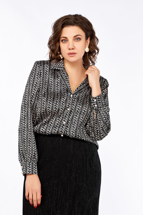 Блузка прямого, свободного силуэта с застежкой на пуговицы, с пиджачным воротником. Рукав длинный на манжете.