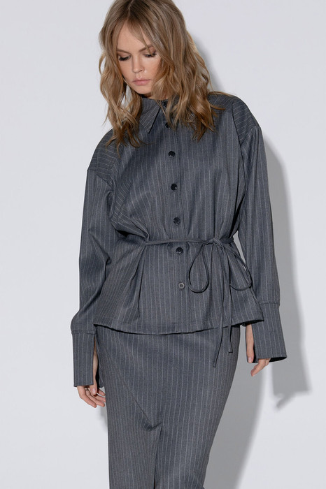 Свободная блуза из текстильной ткани в тонкую полоску.